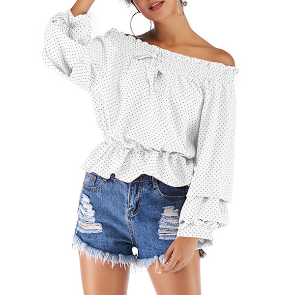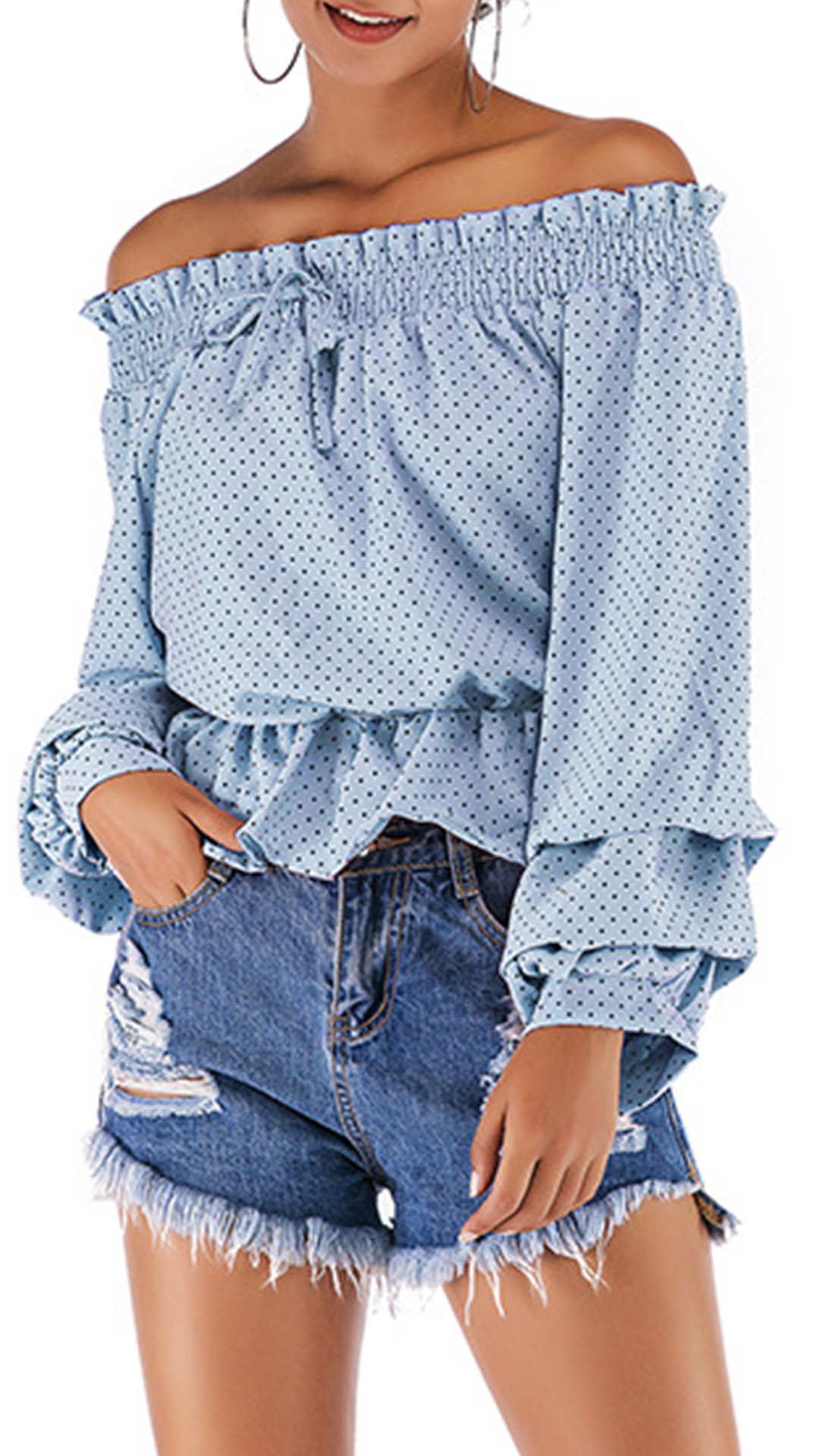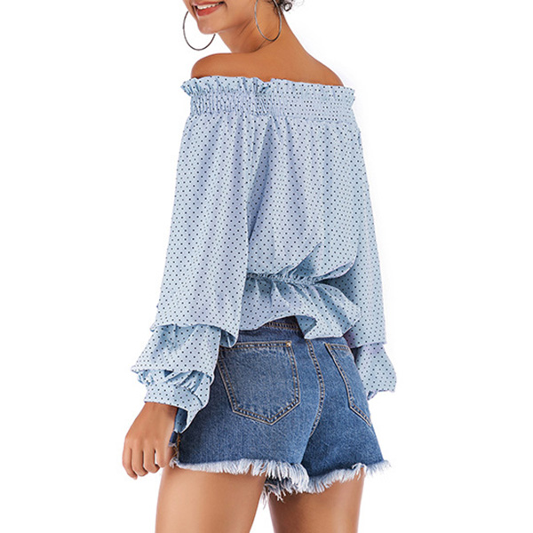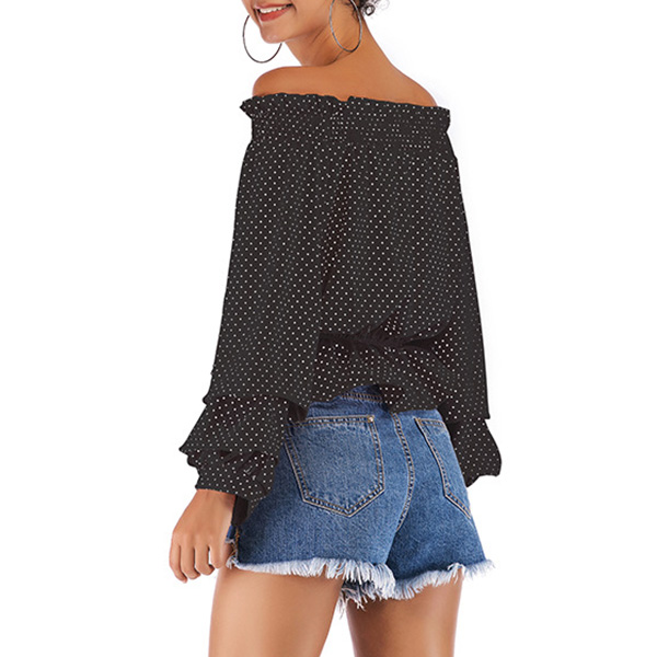 Attracted by this blouse at your first sight? Then invite it to your wardrobe ensemble! Striped style,the off-shoulder boatneck and bowknot design can better demonstrate your feminine appeal. When you wanna look more beautiful,you can consider adding a choker necklace.