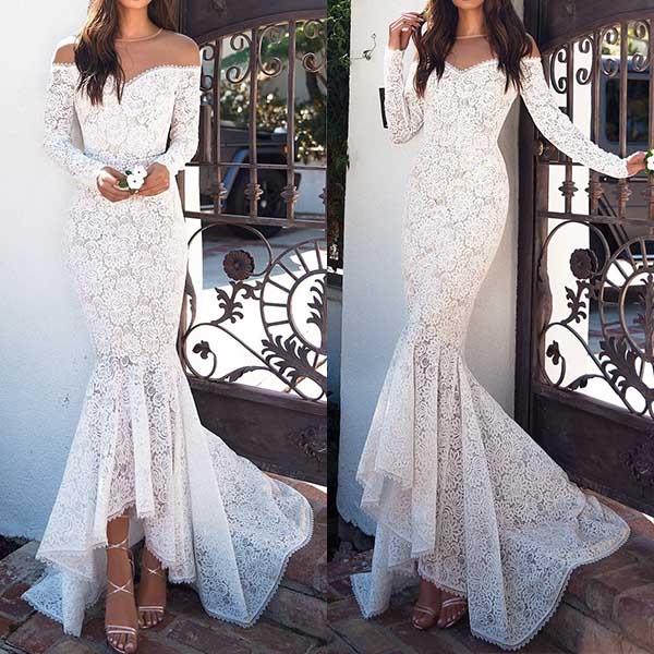 Perhaps this lace dress will help you achieve that. Finished with long sleeve,off-shoulder boat