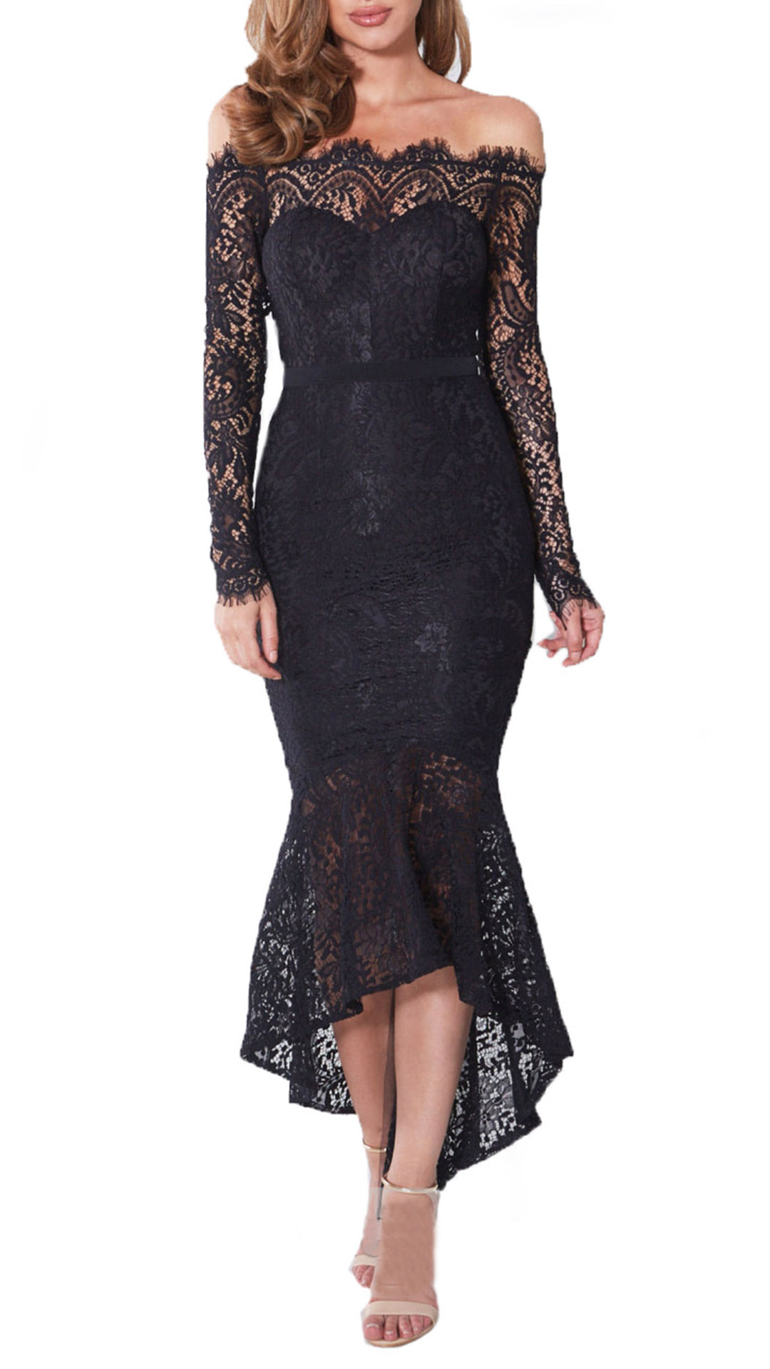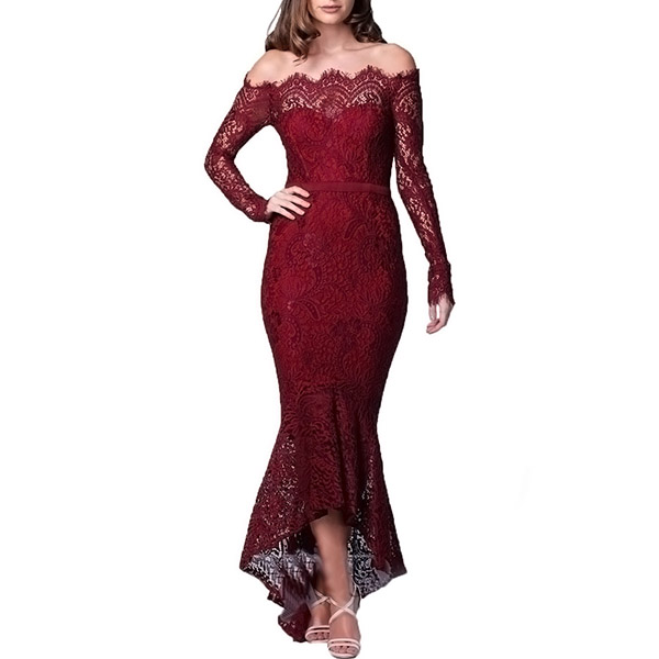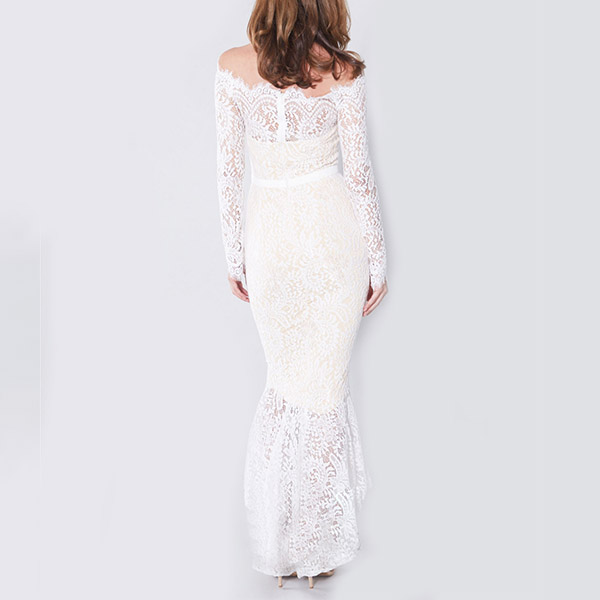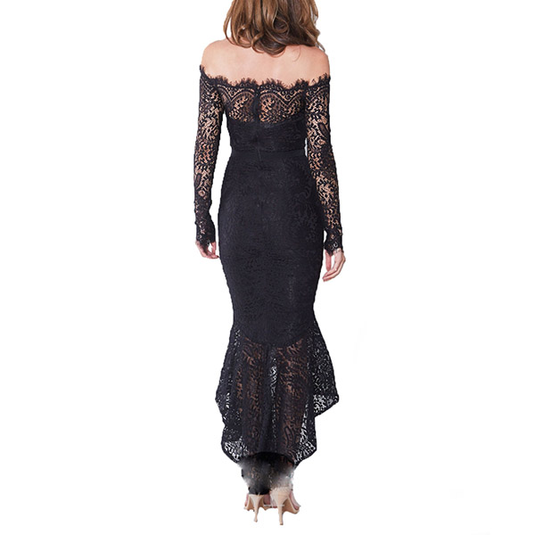 Sexy Off-shoulder Boat Neck Long Sleeve Fishtail Hem Lace Party Dress