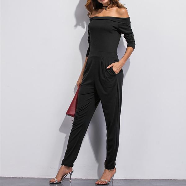 Bring your style to a new level with this jumpsuit. Boasts an elegant and mysterious black tone,accompanied with off-shoulder