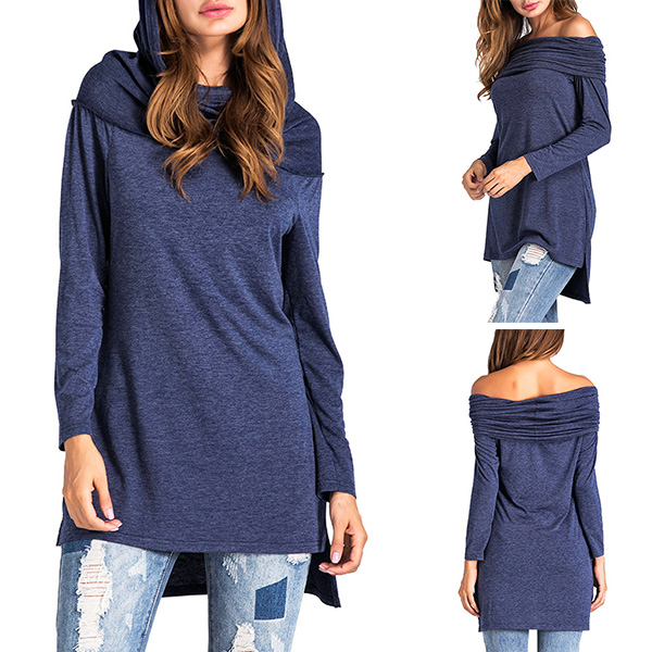long-lasting comfort,while the off-shoulder boat neck,high-low hem and hooded design make this piece look so distinctive.