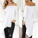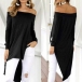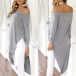 Sexy Off-shoulder Boat Neck Long Sleeve Irregular Hem Top