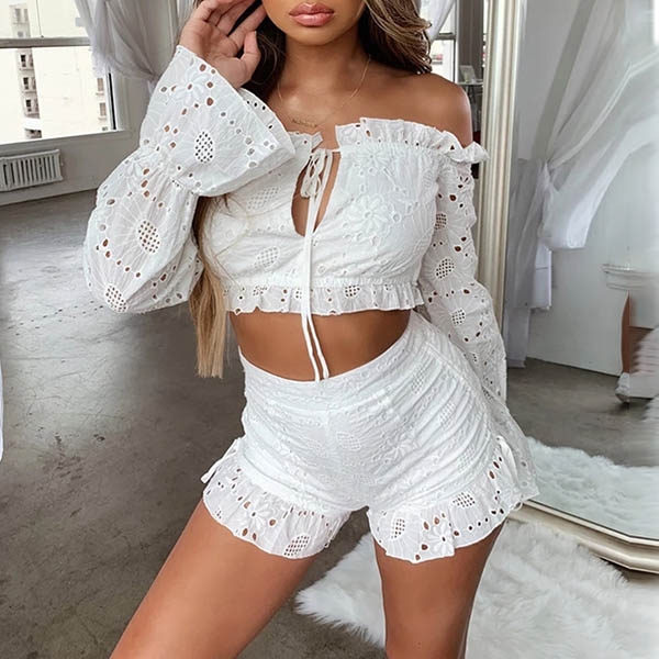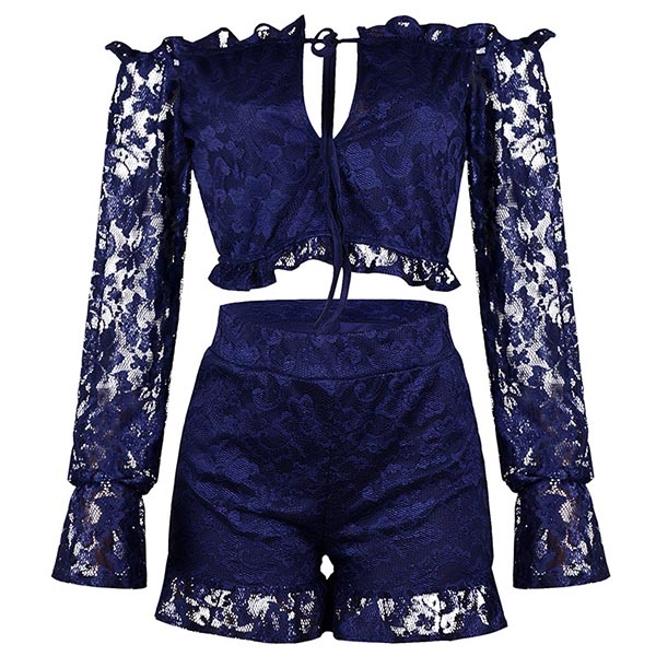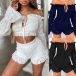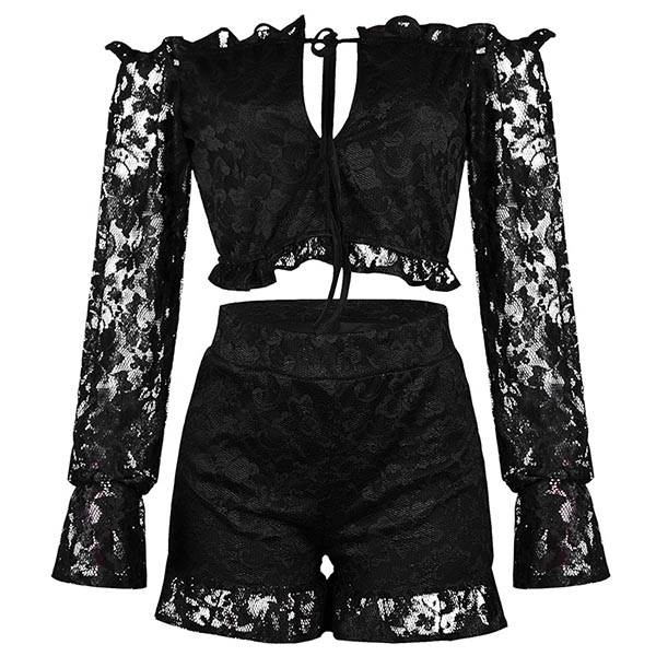 Including a long sleeve crop top and a high waist shorts,this two-piece set can easily showcase