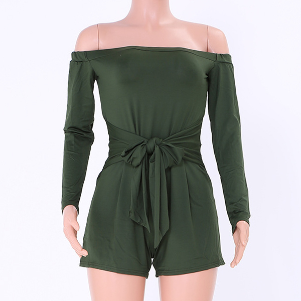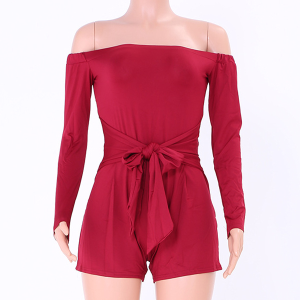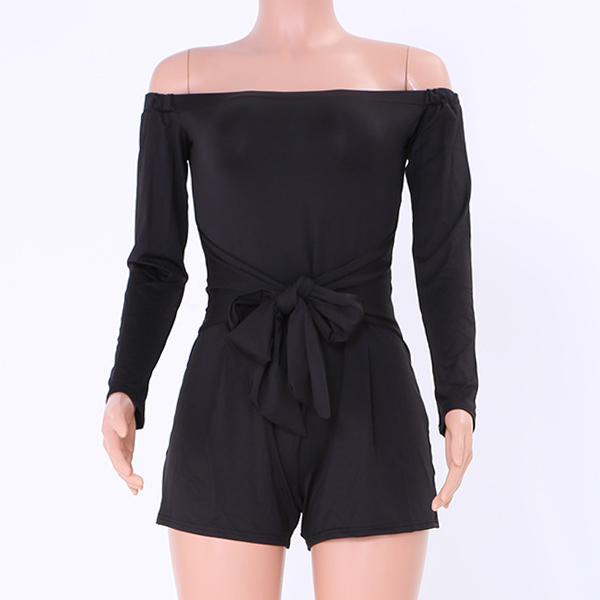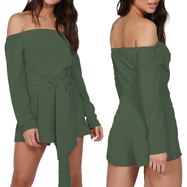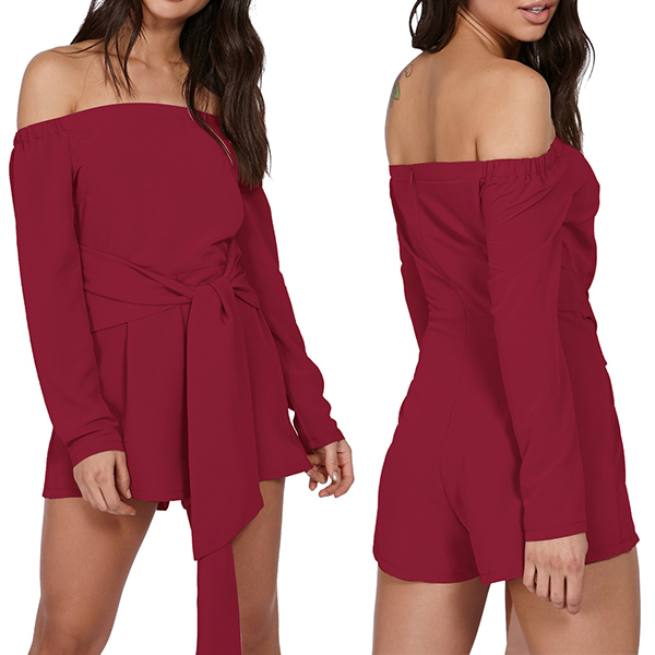 Look exceptionally stunning when you slip into this chic romper. Solid color style,the off-shoulder wide neckline design
