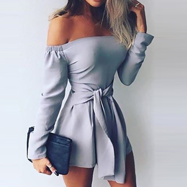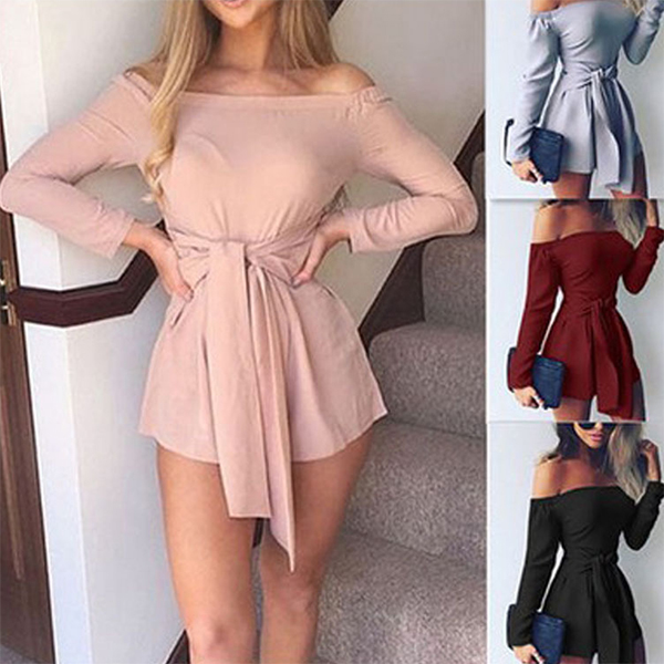 Your style would have an instant boost with the help of this romper. Solid color style,accompanied with an off-shoulder