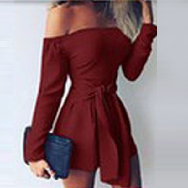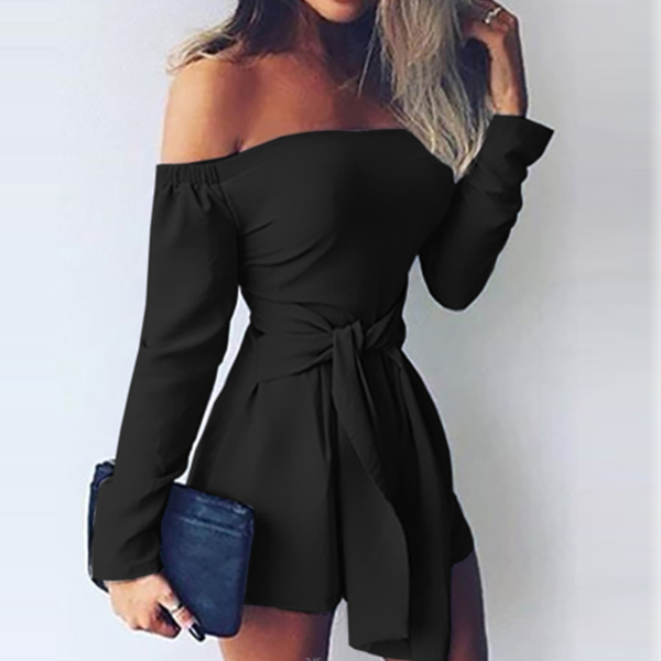 wide neckline,long sleeve and lace-up design at waist part,this romper not only can portray your female charm,