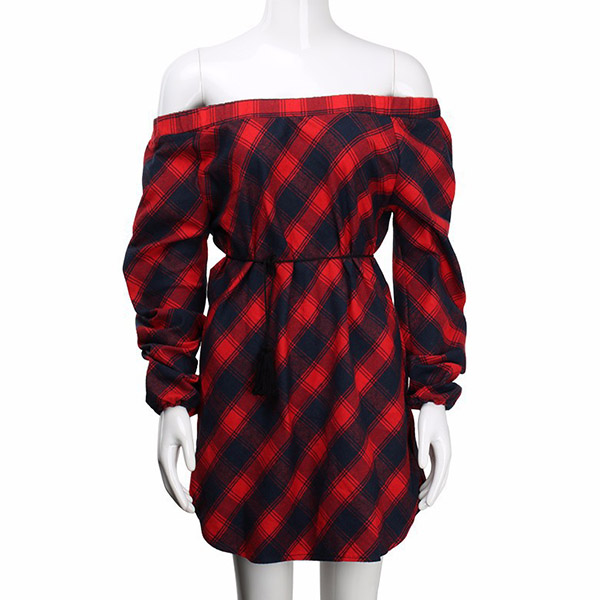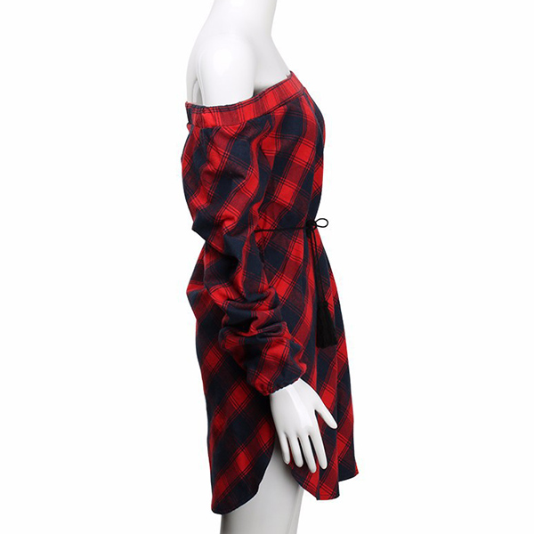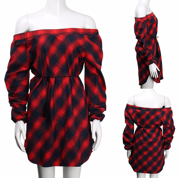 Like plaid element? Then I promise this dress can arouse your attention. Plaid style,the off-shoulder
