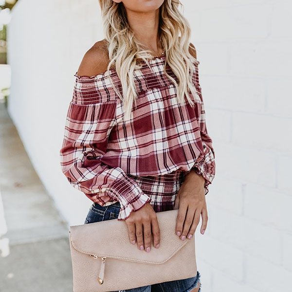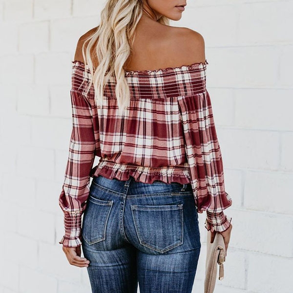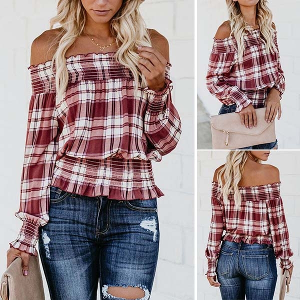 Create a beautiful weekend look with this long sleeve top. Designed with plaid element,stylish and popular,