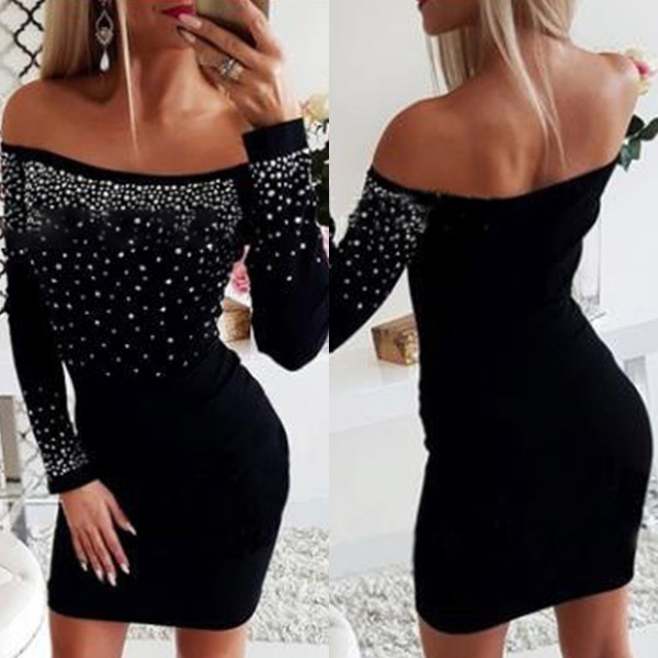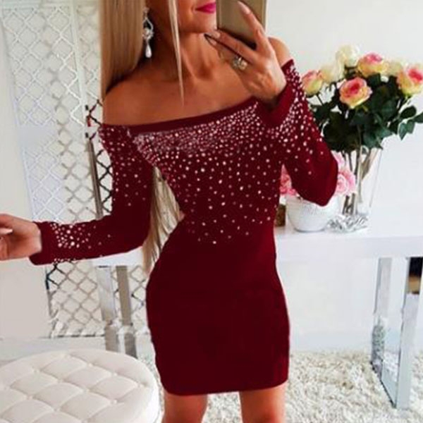 Seductive appeal can come easily once you slip into this dress. Its off-shoulder boat neck and tight