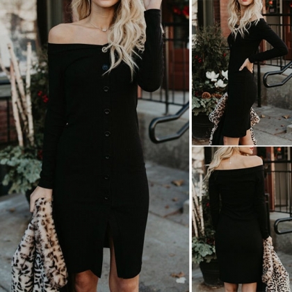 Boasts a classic yet flattering black tone,finished with long sleeve,boat neck,single-breasted and a fit