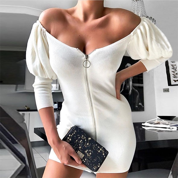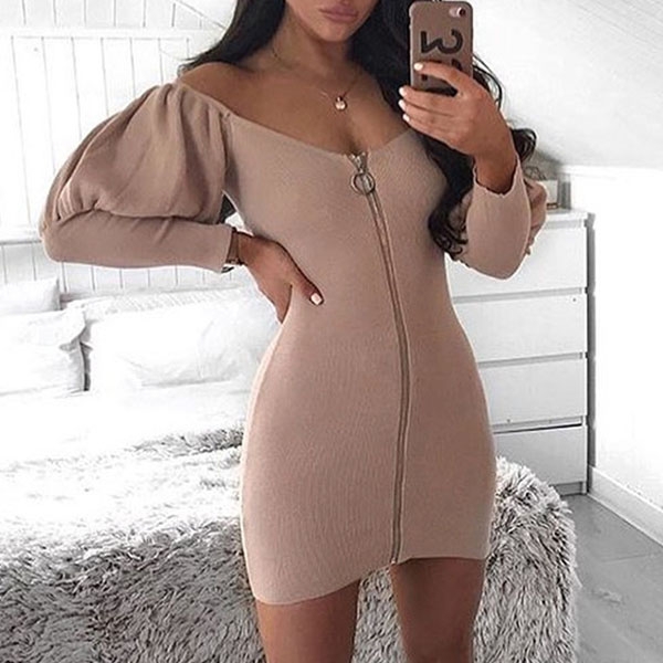 this dress is the key to an effortlessly chic and sultry look. Outfitted with long sleeve,boat neck and a fit