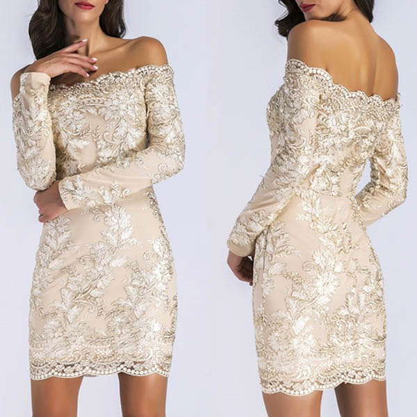 long sleeve,off-shoulder boat neck and a fit silhouette,this dress can demonstrate your seductive curve.