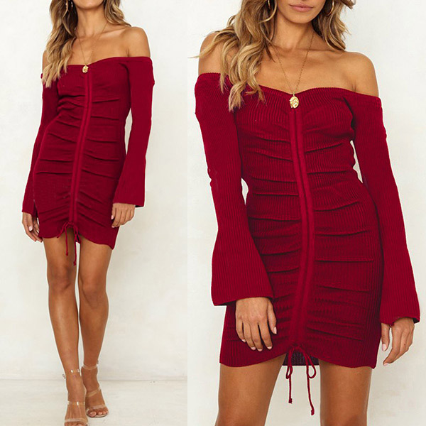 Solid color style,finished with long sleeve,off-shoulder boat neck and a tight silhouette,sexy and alluring.