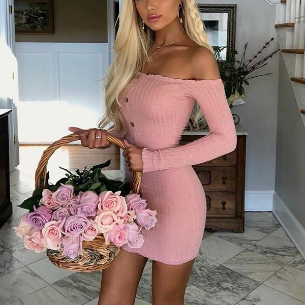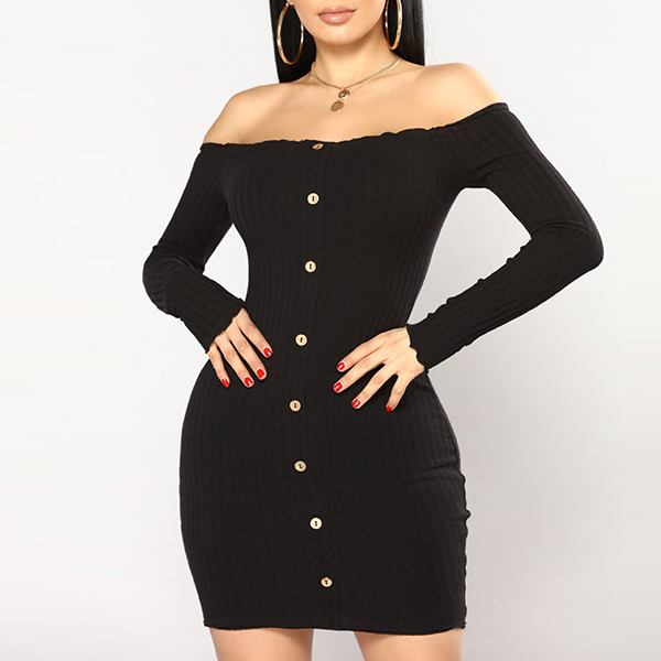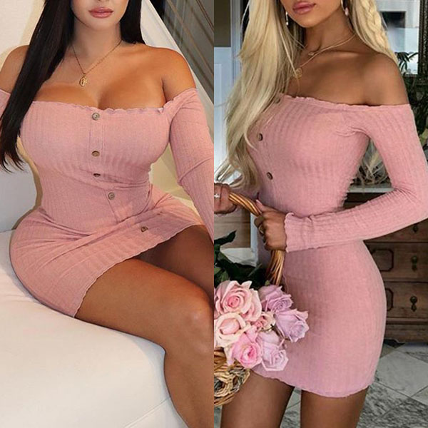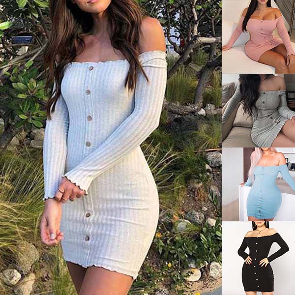 In the spring and autumn,this knit dress can be one of your good choices. Solid color style,the off-shoulder