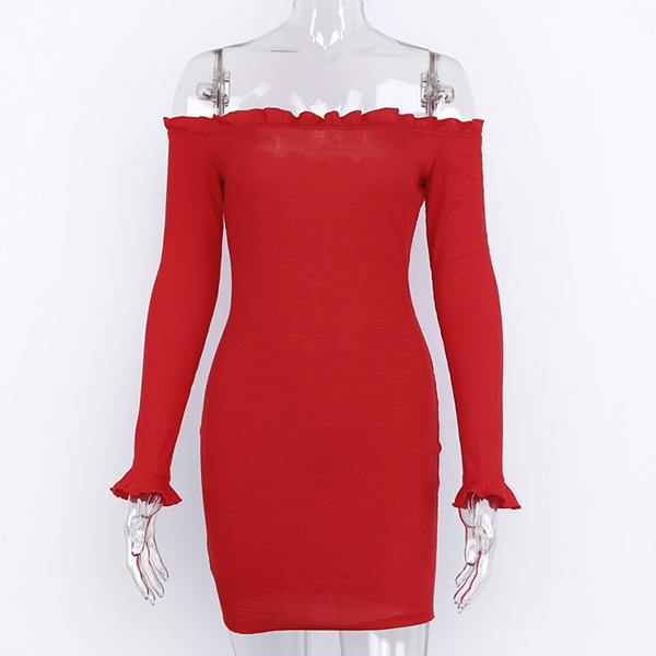finished with long sleeve,of-shoulder wide neckline and a tight silhouette,this dress will exude your female appeal and sexy style.