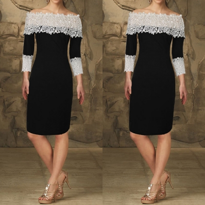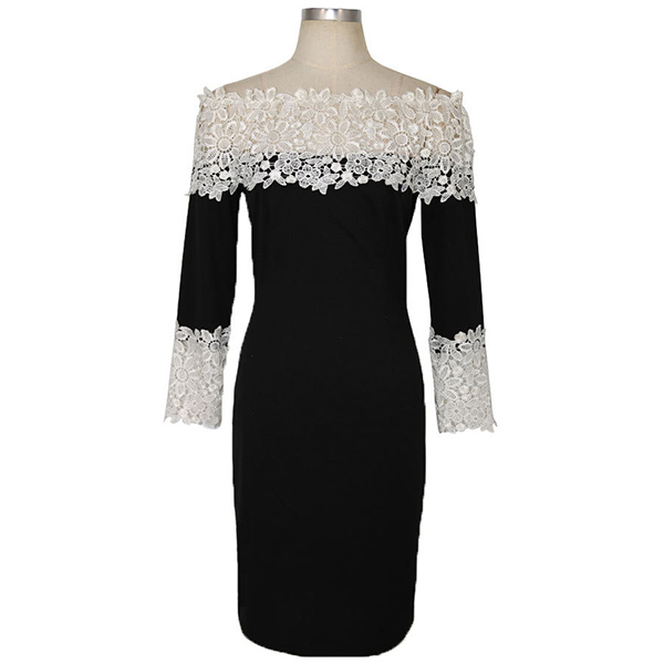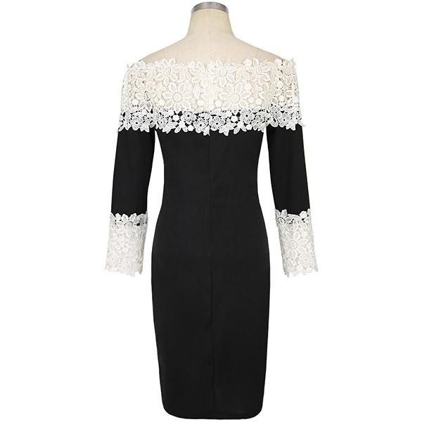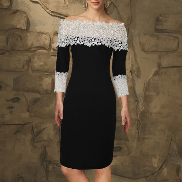Its lace spliced and off-shoulder wide neckline design make this dress look so sexy and charming,while the