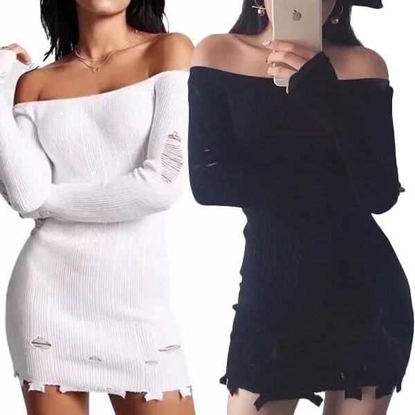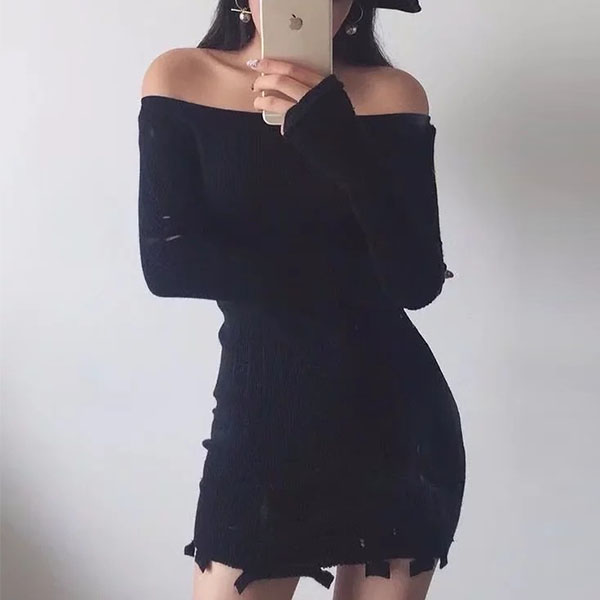 Hey,girls,you can choose this knit dress to make your day more wonderful. Solid color style,the off-shoulder