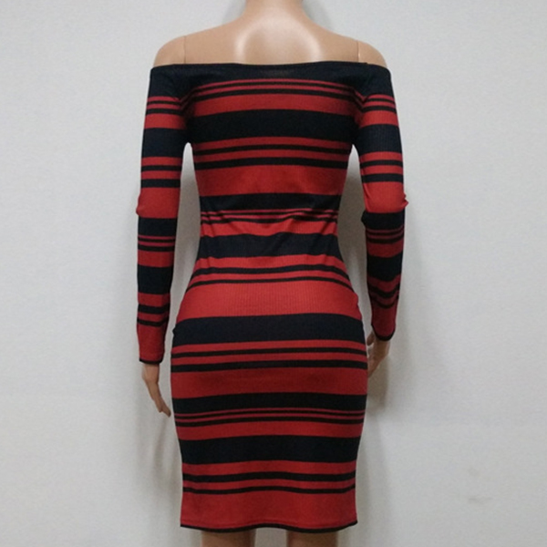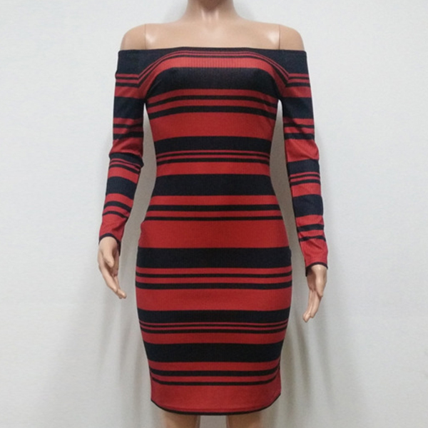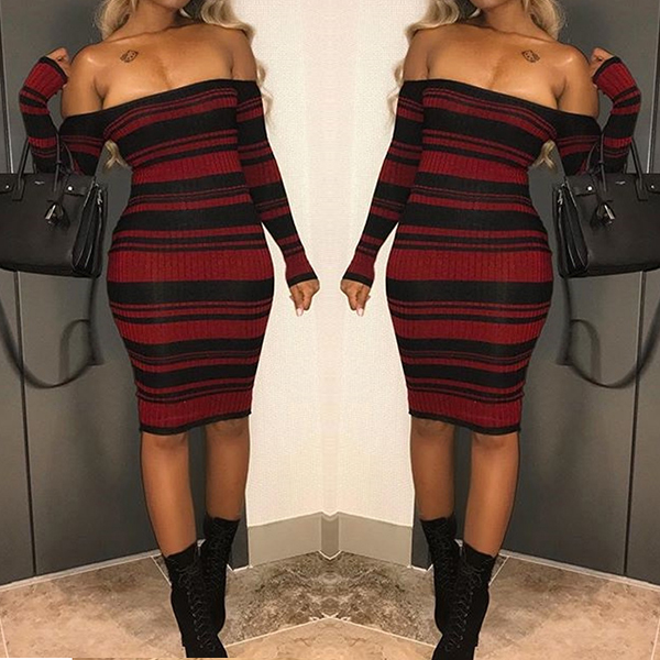 You can enhance your feminine appeal on the weekends if you choose this dress. Striped style,designed with long