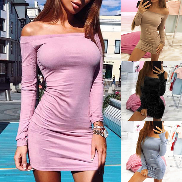 Solid color style,designed with an off-shoulder wide neckline,long sleeve and a super fit silhouette,