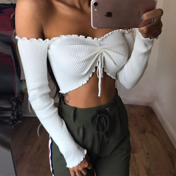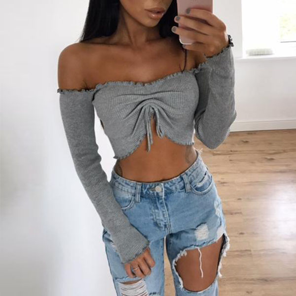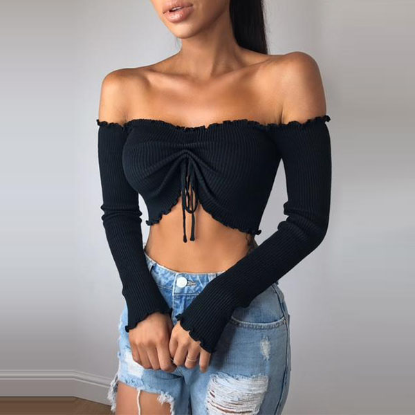 with an off-shoulder wide-neckline,long sleeve and wrinkled design at front,sexy and distinctive. Matching with your