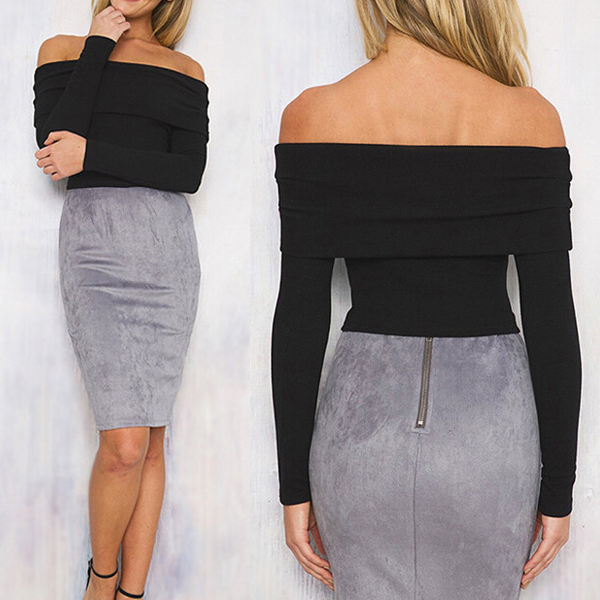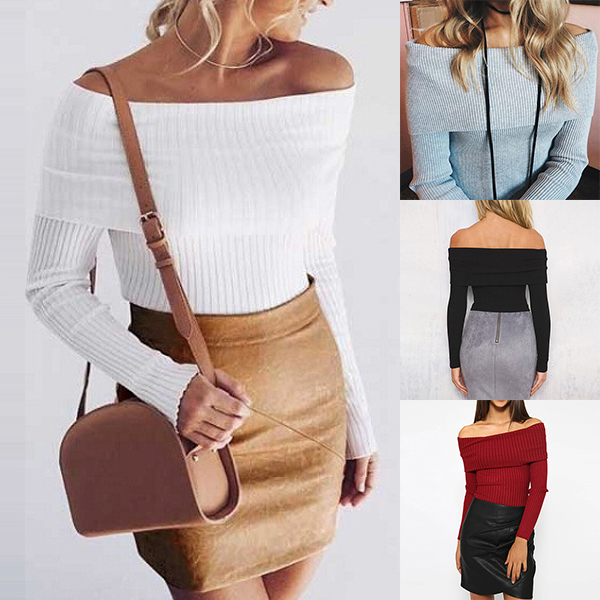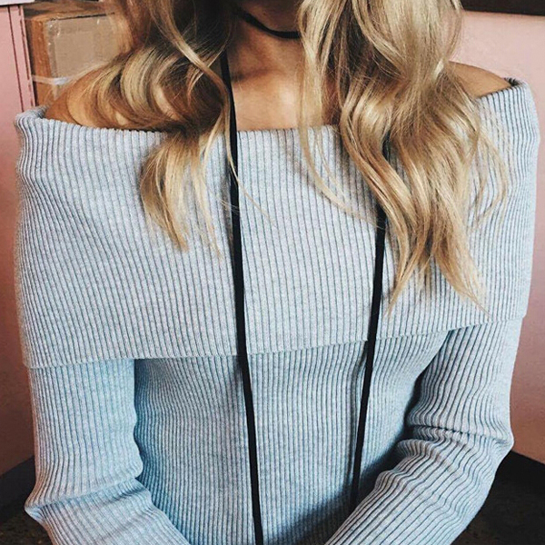 cozy knitted fabric,this wonderful piece can offer you a comfortable day,while the off-shoulder wide neckline design