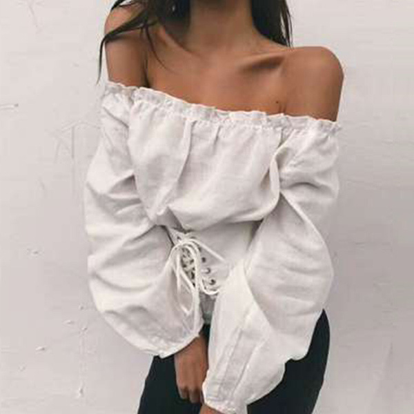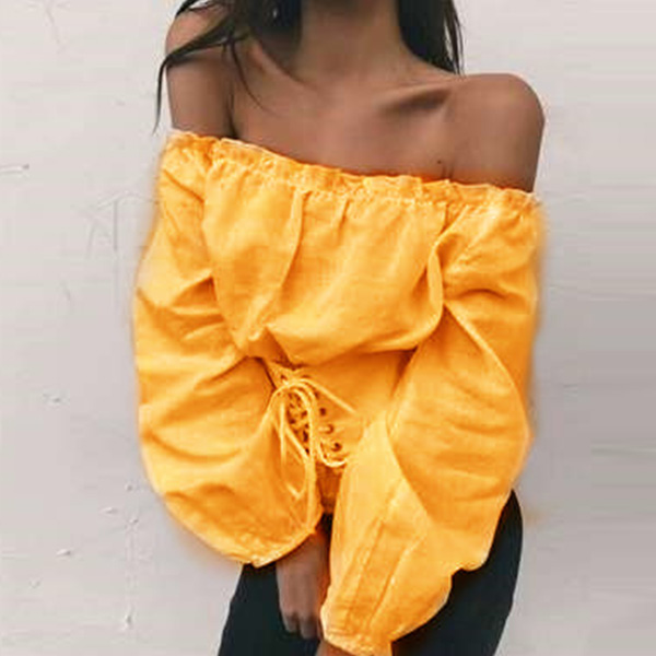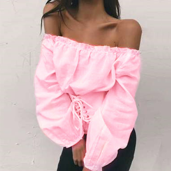 color,the off-shoulder boat neck and lace-up design at waist part make this piece look so sexy and