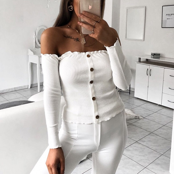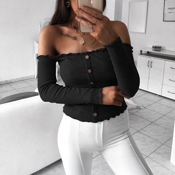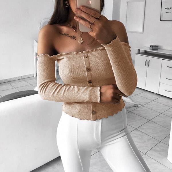 This t-shirt that exudes simple,cozy and sexy flavor will give you a charming look. Coming with