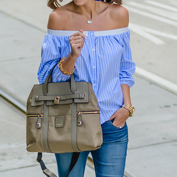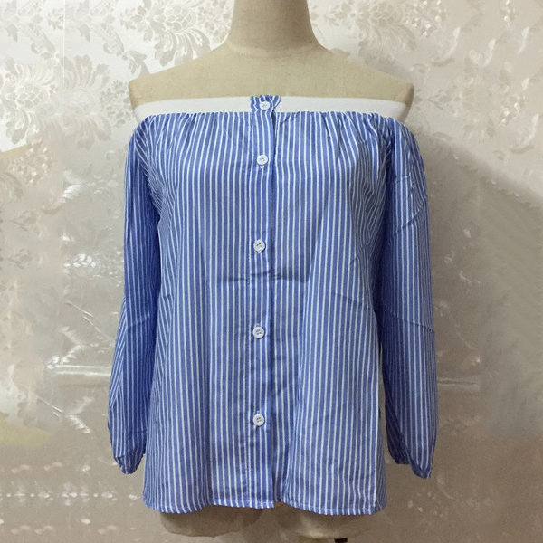 off-shoulder wide neckline,long sleeve and single-breasted,this blouse can lend you a sweet,charming style