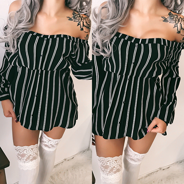 No matter for your night dating or weekend gatherings,this dress can be a good choice. Striped style,the