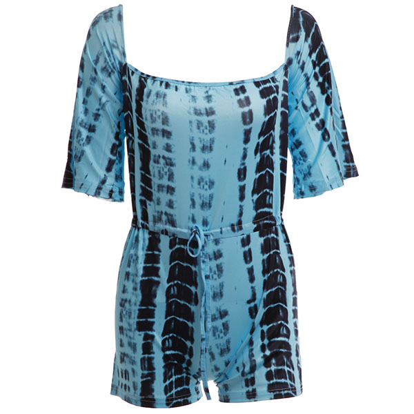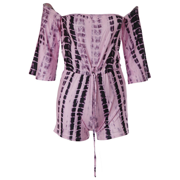 printed pattern,accompanied with an off-shoulder boat neck,an elastic waist and cozy fabric,this romper knows how to