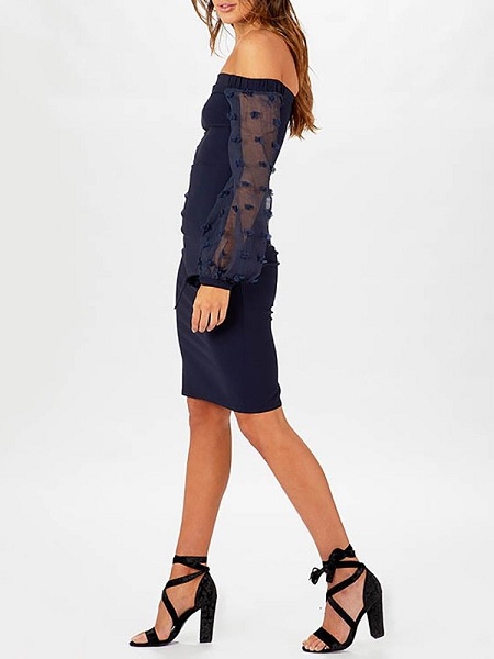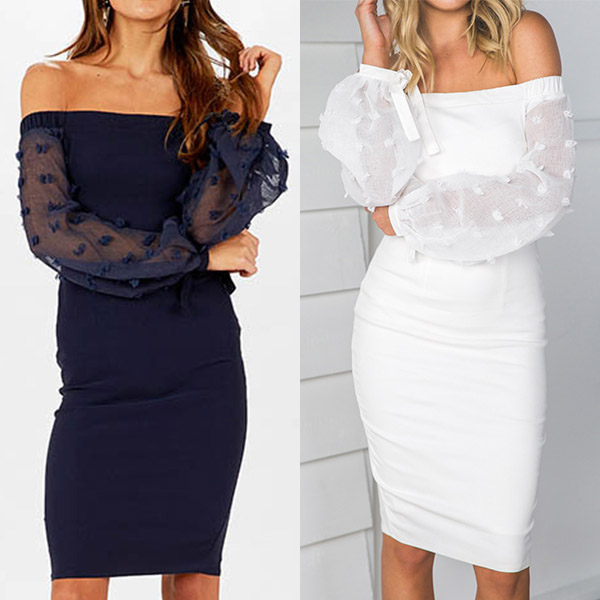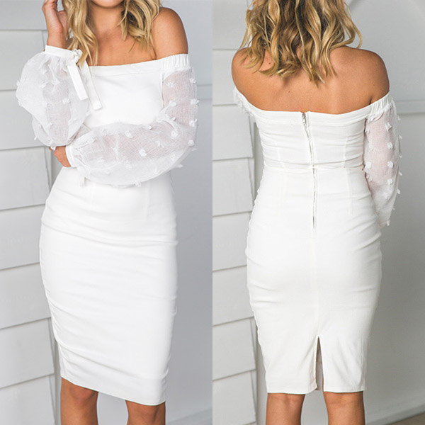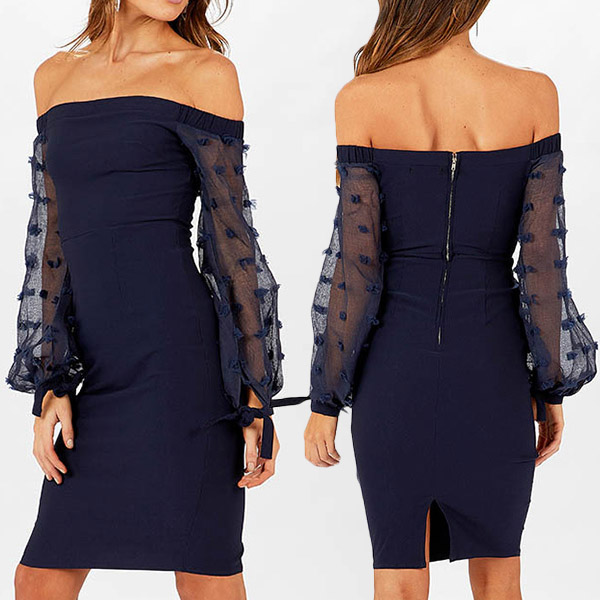 count on this dress! The off-shoulder boat neck and fit silhouette design can showcase your charming