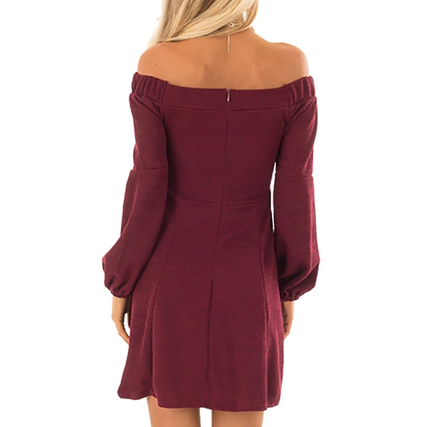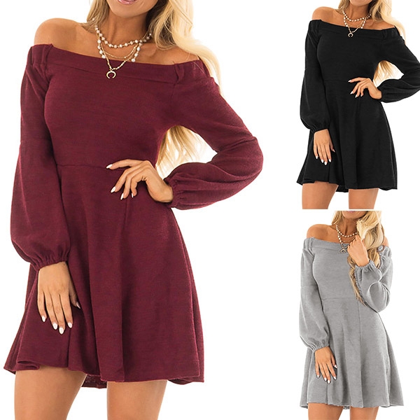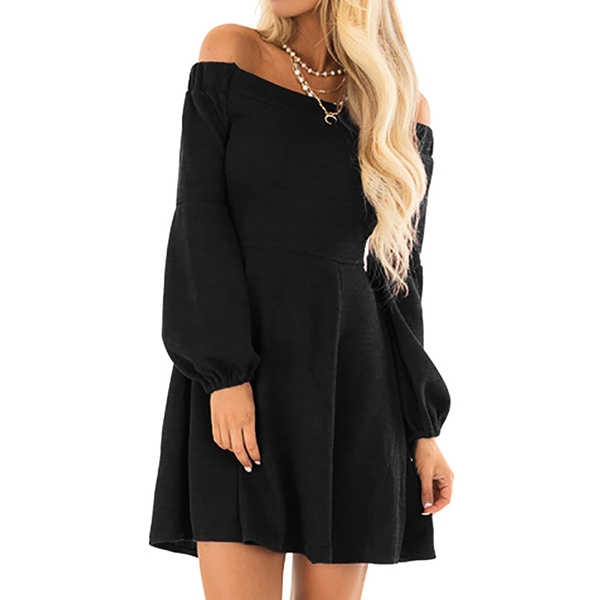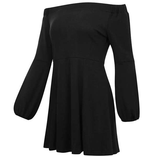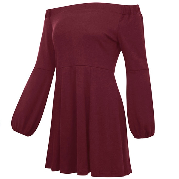 with a solid color,the off-shoulder boat neck and puff sleeve design will give you a more charming look.