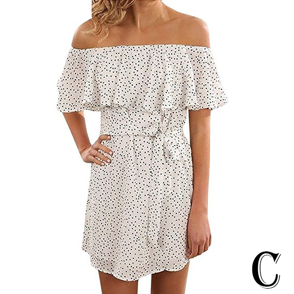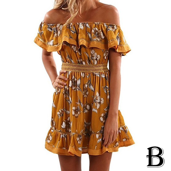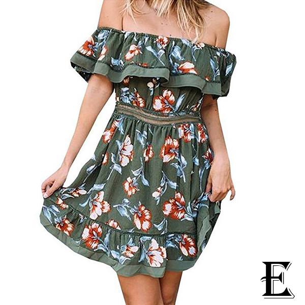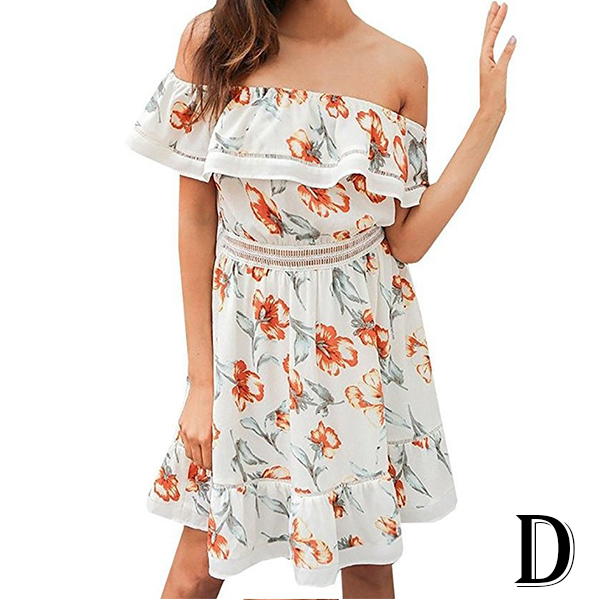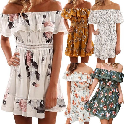 the off-shoulder boat neck and ruffle hem design make this piece more attractive. For your tropical getaways