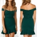 Sexy Off-shoulder Boat Neck Ruffle Hem Solid Color Party Dress