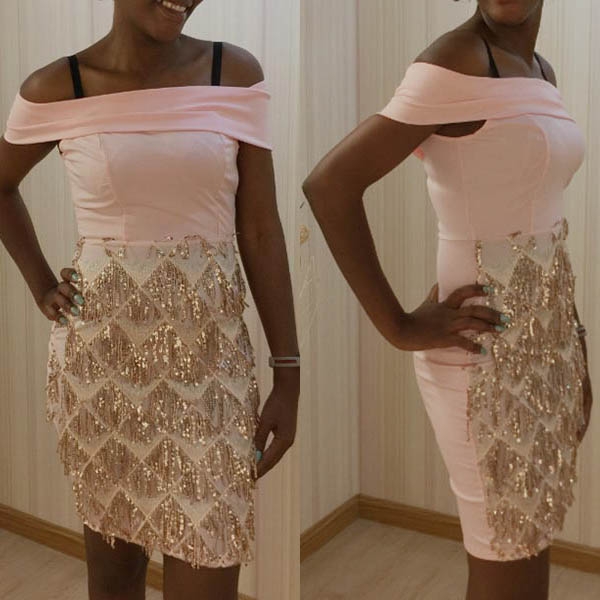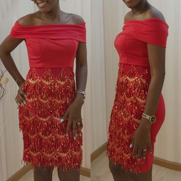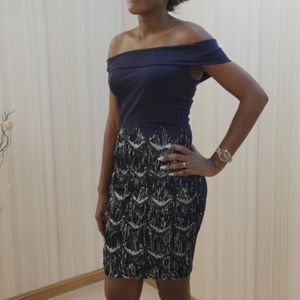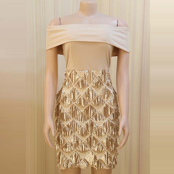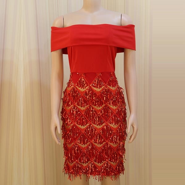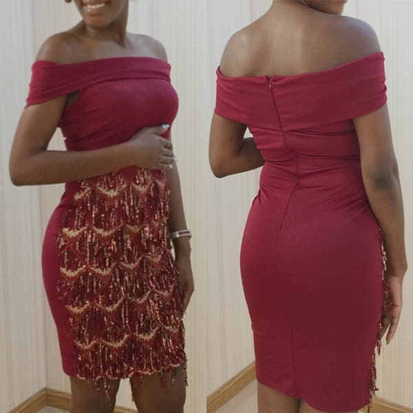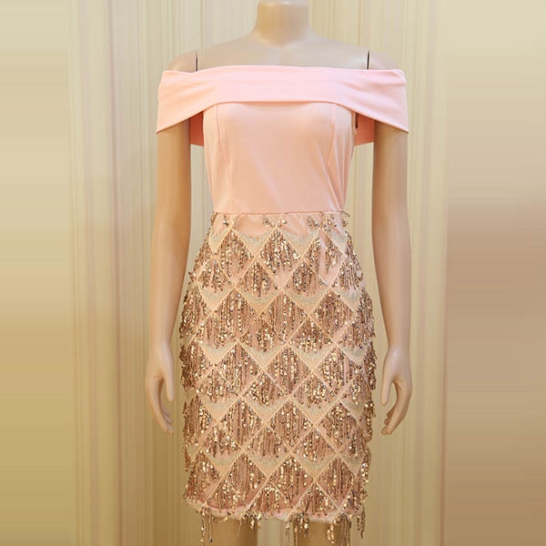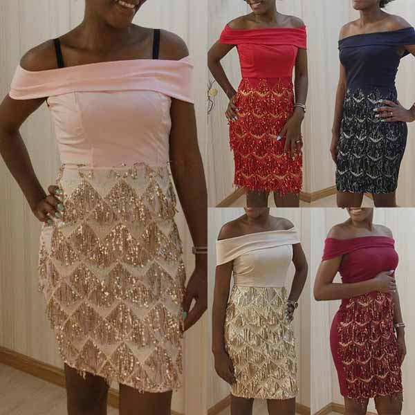draw some attention. Finished with boat neck,a fit silhouette and sequin details,this dress can