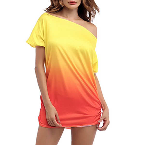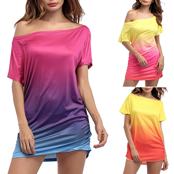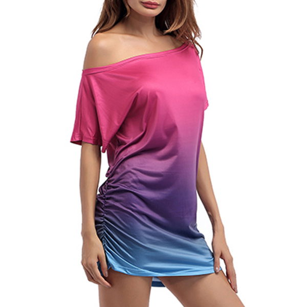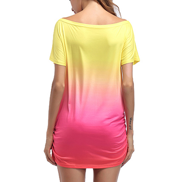 Take an interest with this t-shirt dress to give your style an update. The color gradient design makes this