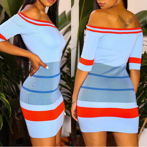 Contrast color design will boosts its charm,while the off-shoulder boat neck design will give you a