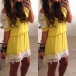 dress to your wardrobe. Designed with off-shoulder wide neckline,short sleeve,elastic waist and lace spliced details,cozy,