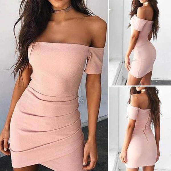 Then we suggest you this piece. Solid color style,designed with an off-shoulder wide neckline,short sleeve,