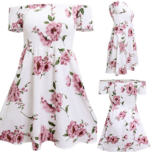 Boasts vibrant floral print,its off-shoulder wide neckline makes this piece more alluring. Perhaps adding a sparkle