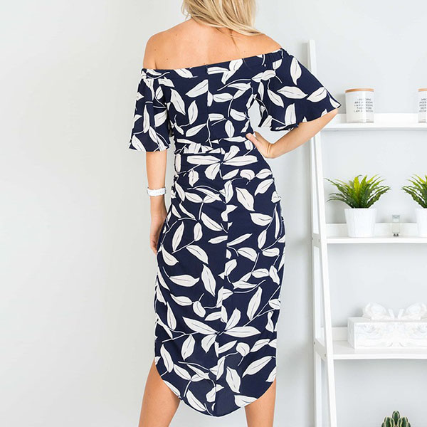 eye-catching printed pattern,the off-shoulder boat neck and slit hem design will showcase your sexy