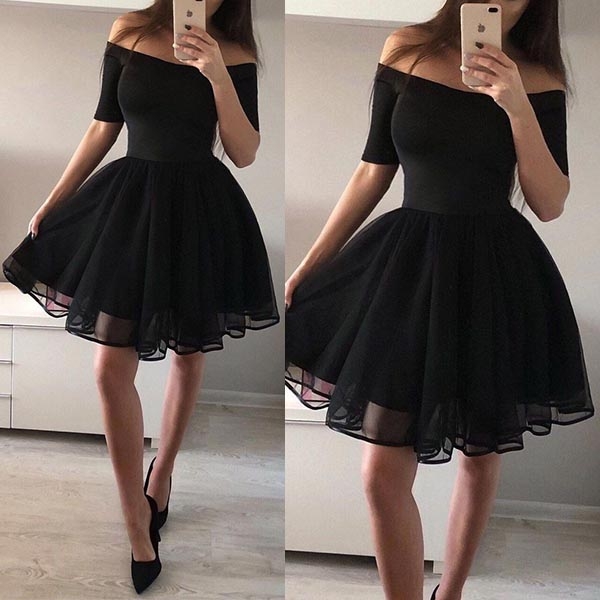not have one in your wardrobe? Black is a classic yet flattering color,and the off-shoulder boat neck design