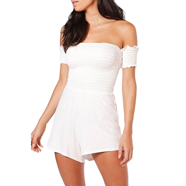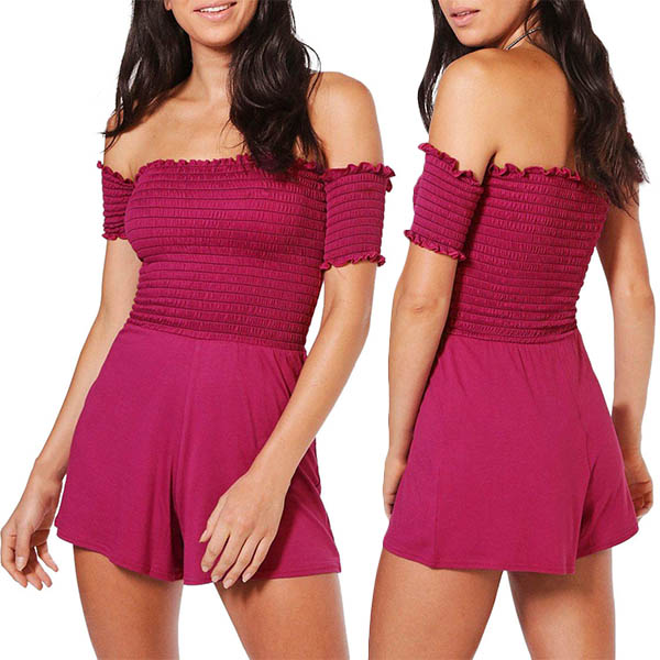 Embrace a sun-soaked weekend with this romper. It comes with a solid color,the off-shoulder boat neck