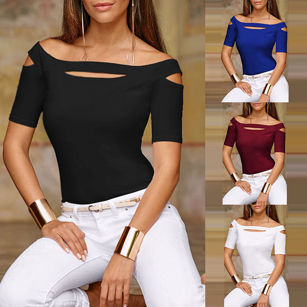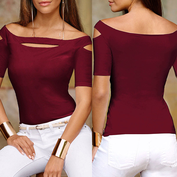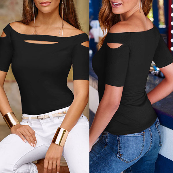 Cozy,stylish and feminine style is what this t-shirt can offer you! Comes with a solid color,the off-shoulder boat