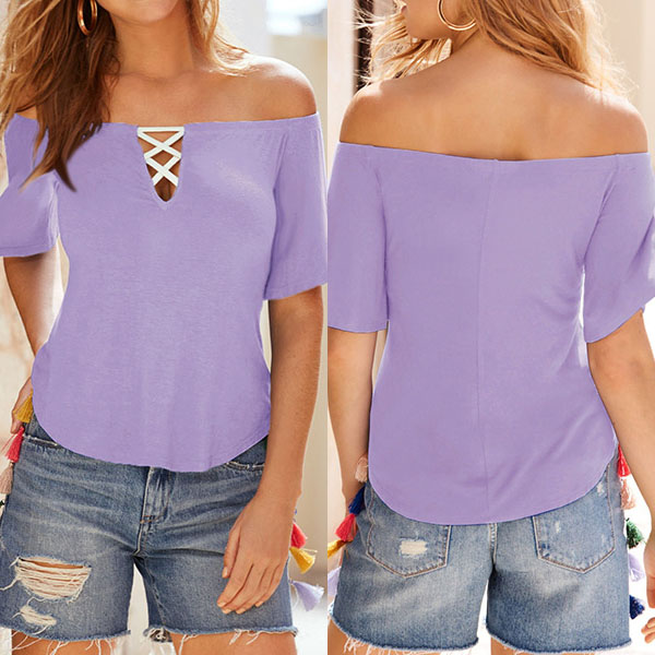 Cozy yet sexy,this is what this t-shirt can offer you! Solid color style,the off-shoulder boat neck design is