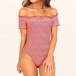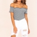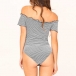 Wanna try a different style? Then make your eyes focused on this romper! Striped style,the off-shoulder boat neck