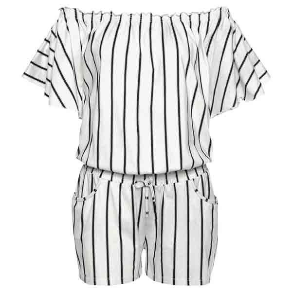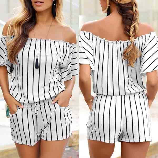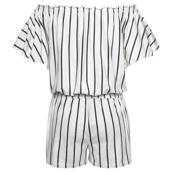 You can update your style with the help of this short sleeve romper. Designed with striped element,the boat neck