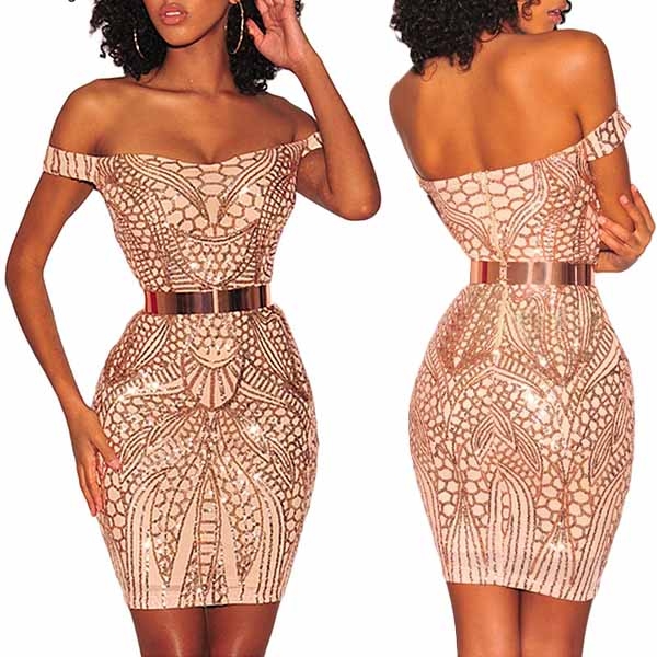 The sequin design makes it look so eye-catching and sparkle,while the off-shoulder boat neck and