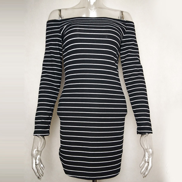 Designed with fashion stripe prints, accompanied with the off-shoulder wide neckline,the slit hem and super fit silhouette design,
