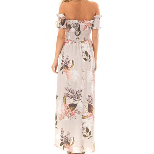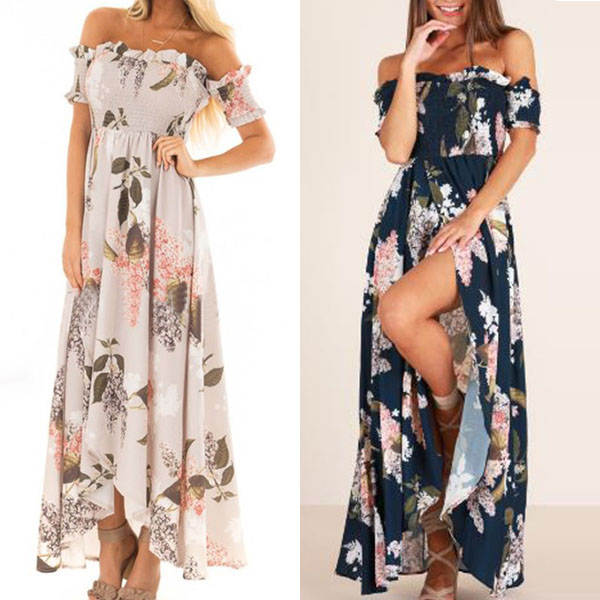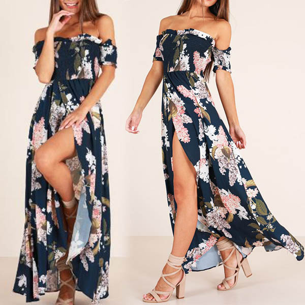 an easy transition. Boasts vibrant floral print,the off-shoulder boat neck and slit hem design make this